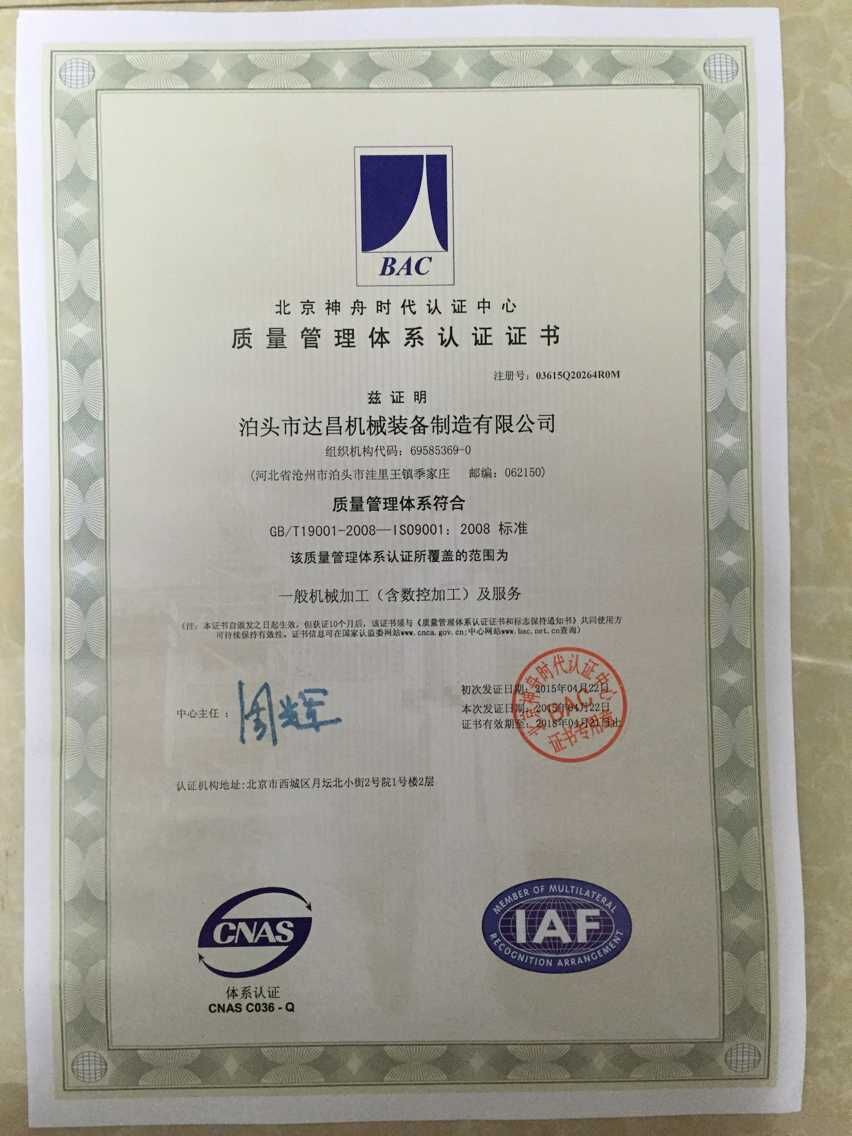 由于9001質(zhì)量體系認(rèn)證證書過期,今年4月份,我司邀請北京神州時(shí)代認(rèn)證中心對我司質(zhì)量體系進(jìn)行認(rèn)證。經(jīng)認(rèn)證通過,為我司頒發(fā)新中文版及英文版9001質(zhì)量體系認(rèn)證證書。