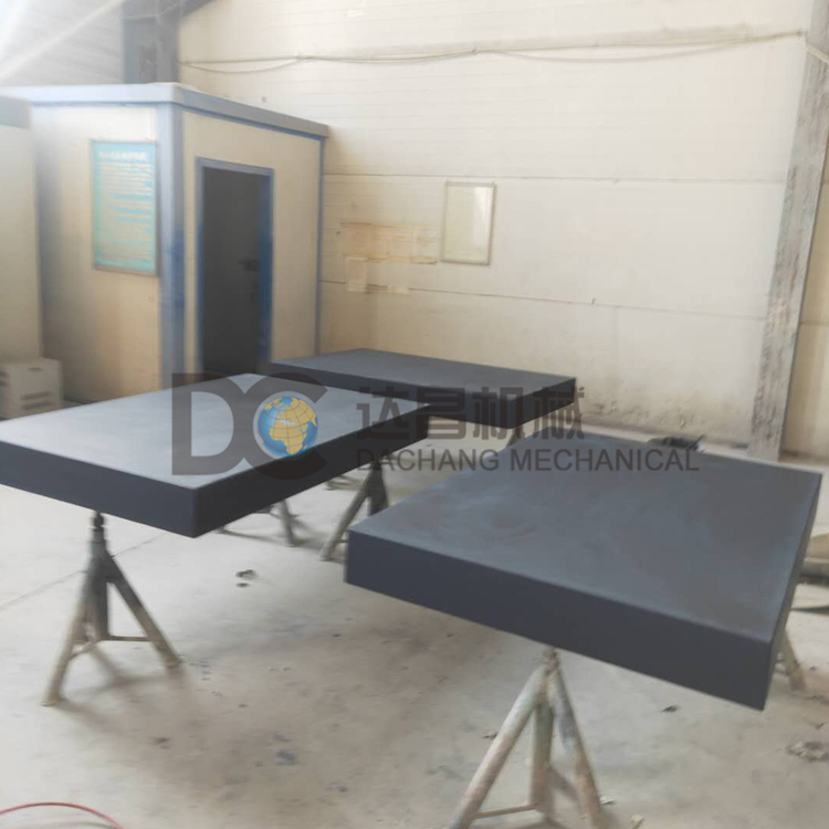 大理石平板應該安置在恒溫和濕度受控的空調房間內,避免陽光直射或通風;尤其重要的是不能有鉛垂方向的溫差或溫度梯度,導致平板工作面與底面具有不同的溫度。例如,一塊長1000mm、厚250mm平板的工作面與底面之間若具有1℃的恒定差異, 能產生約1um的變形,該變形量是1000mmx630mm的0級平板的全部制造偏差的16%。以此看見大理石平板平面精度會根據溫度的變化而變化。